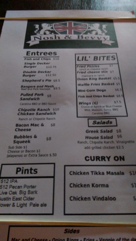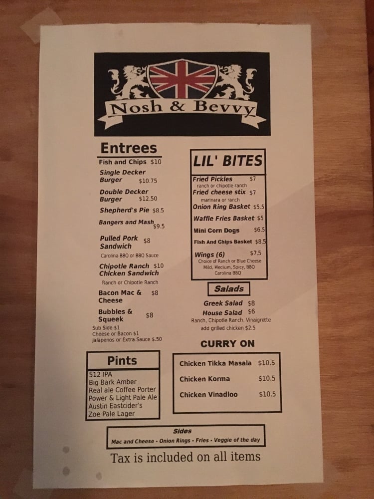 Welcome to Nosh & Bevvy, a charming spot located at 8440 Burnet Rd Austin, TX, known for its vibrant atmosphere and delectable food. This casual divey pub offers a menu that beautifully marries comfort food with British classics, making it an ideal setting for both dinner and social gatherings.